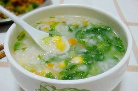 粥煲好後,放入生菜絲,攪均後就可以享用了。