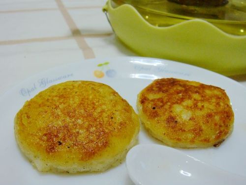 - 平底锅倒油(油以刚好盖住锅底为适量),将土豆饼放入平底锅中,用中小火煎至两面金黄色,即可。